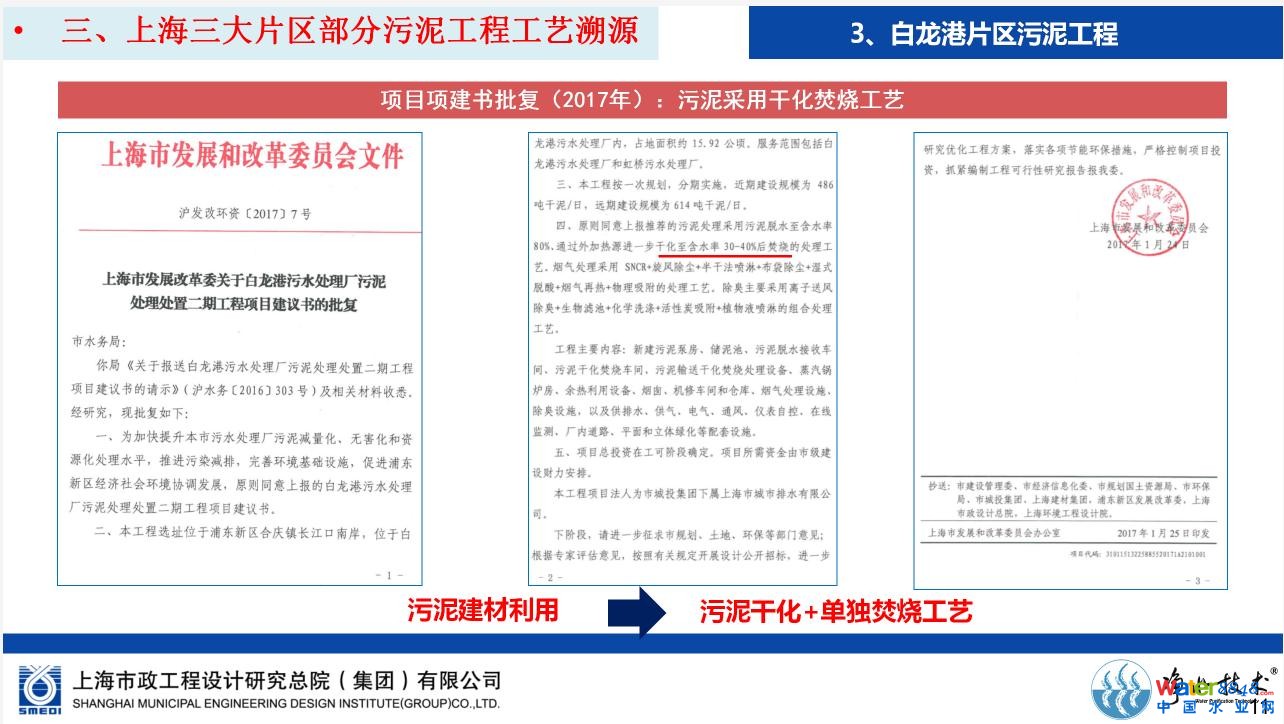 上海市政工程設(shè)計研究總院(集團)有限公司第三設(shè)計研究院總工程師胡維杰結(jié)合上海污泥處理三大片區(qū)中部分污泥工程的工藝演變,指出污泥單獨焚燒是我國近階段污水廠污泥處理的比選方案之一。