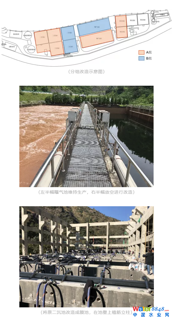 中南市政設(shè)計(jì)院針對項(xiàng)目特點(diǎn),編制了四個(gè)技改方案,與參建各方展開了多次技術(shù)討論會,并多次駐扎現(xiàn)場進(jìn)行實(shí)地勘查,在對比、綜合各方利弊后確定技改成MBR工藝,并最大限度的利用現(xiàn)狀構(gòu)筑物土建,在滿足出水要求的同時(shí),節(jié)約工程投資。