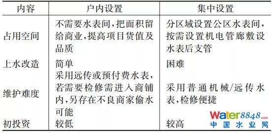 3)水表戶內(nèi)設(shè)置與集中設(shè)置對比,如表1所示。