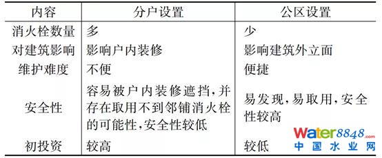 由表2可以看出,在建筑外立面許可條件下應(yīng)優(yōu)先將消火栓布置于公區(qū),保護(hù)不到之處在商戶內(nèi)加設(shè)消火栓;若采用分戶布置消火栓的形式,應(yīng)事先與甲方商議,并積極與當(dāng)?shù)貙張D及消防部門溝通,以免后期審查不過引起設(shè)計返工。