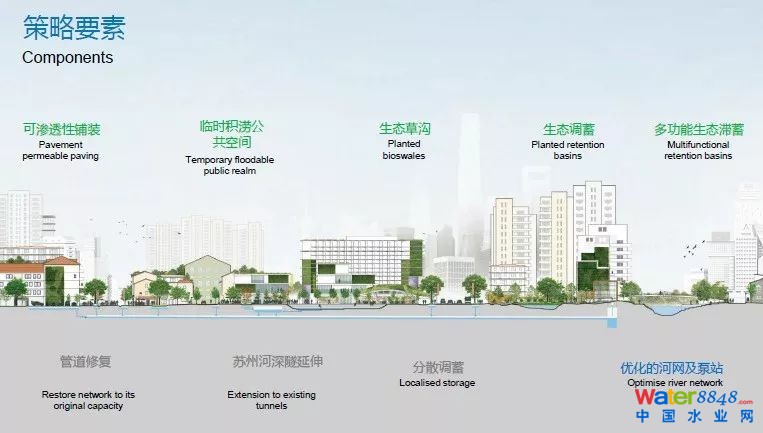 利用城市的數(shù)據(jù),對用地數(shù)據(jù)、基礎設施的潛力進行分析。最終為上海提出的策略是一種綠色、藍色和灰色相結合的方法,以最大限度地發(fā)揮出基礎設施的潛力。