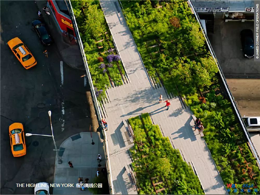 如何更好地將藍綠色基礎設施系統(tǒng)融入其他基礎設施?需要將藍綠色基礎設施建設融入街道和房屋改造中,在沒有機動車的區(qū)域里面,非常有助于為藍綠色的系統(tǒng)創(chuàng)造空間。另外也可以尋找一些冗余的城市空間。其中紐約非常著名的高線公園,就是尋求城市中可以融入綠色基礎設施的典型代表。