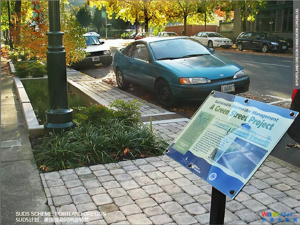 Justin Abbott提出,應該想辦法讓城市路面更具有滲透性,就像城市里面的電車軌道綠地一樣,呈現(xiàn)海綿狀的狀態(tài)。絕大多數(shù)的街道路面都可以進行可持續(xù)的雨水設計改造,在美國波特蘭的開創(chuàng)性城市網(wǎng)絡包括了398個生態(tài)屋頂,3200棵街道樹,即使是非常小規(guī)模的設計也可以極大改善街道,很多人愿意選擇到這里居住,是為了更好的生活質量,波特蘭就是綠色基礎設施投資對城市形象有極大提升的非常好的例子。
