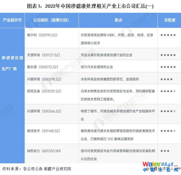 1、滲濾液處理產(chǎn)業(yè)上市公司匯總
