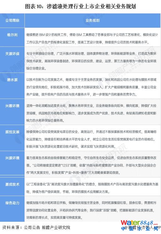 5、滲濾液處理行業(yè)上市公司業(yè)務規(guī)劃