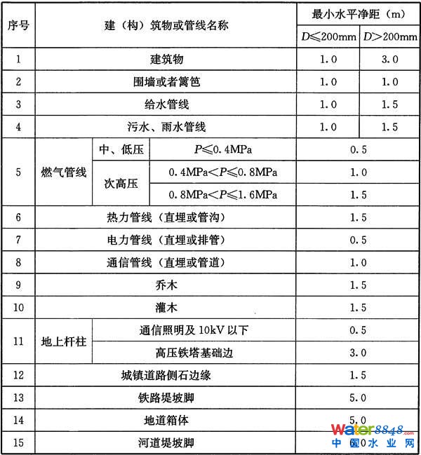 6.1.6 再生水管道與建(構(gòu))筑物、鐵路以及其他工程管道之間的最小水平凈距,應(yīng)按本規(guī)范附錄A的規(guī)定確定。