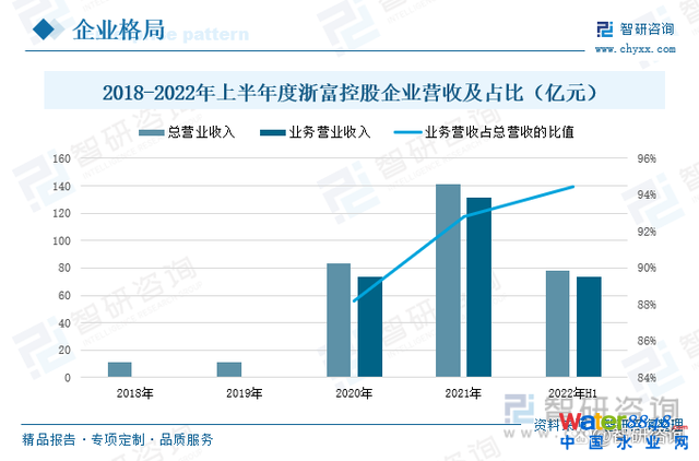浙富控股業(yè)務(wù)領(lǐng)域主要涉及危廢資源化、清潔能源裝備板塊。在“清潔能源、大環(huán)保”發(fā)展戰(zhàn)略指引下,公司聚焦危險廢物無害化處置及資源化回收利用領(lǐng)域,擁有集危險廢物“收集-貯存-無害化處理-資源深加工”前后端一體化的全產(chǎn)業(yè)鏈危廢綜合處理技術(shù)與設(shè)施。2020年以來,浙富控股加快布局固廢危廢資源化利用領(lǐng)域,并取得了優(yōu)異的成效,2021年浙富控股固廢危廢資源化利用業(yè)務(wù)的營業(yè)收入為131.2億元,較2020年增長了78.26%,占2021年總營業(yè)收入的92.82%。2022年上半年浙富控股的總營業(yè)收入為78.04億元,較2021年同期增長了13.54%;固廢危廢資源化利用的營業(yè)收入為73.72億元,同比增長了13.63%。