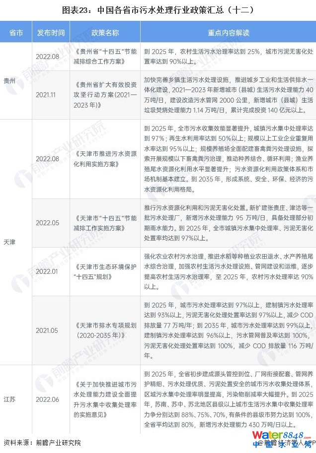 重磅!2023年中國(guó)及31省市污水處理行業(yè)政策匯總及解讀(全) 持續(xù)推進(jìn)污水處理提質(zhì)增效 轉(zhuǎn)自:前瞻產(chǎn)業(yè)研究院 行業(yè)主要上市公司:碧水源(300070);北控水務(wù)(00371.HK);金達(dá)萊(688