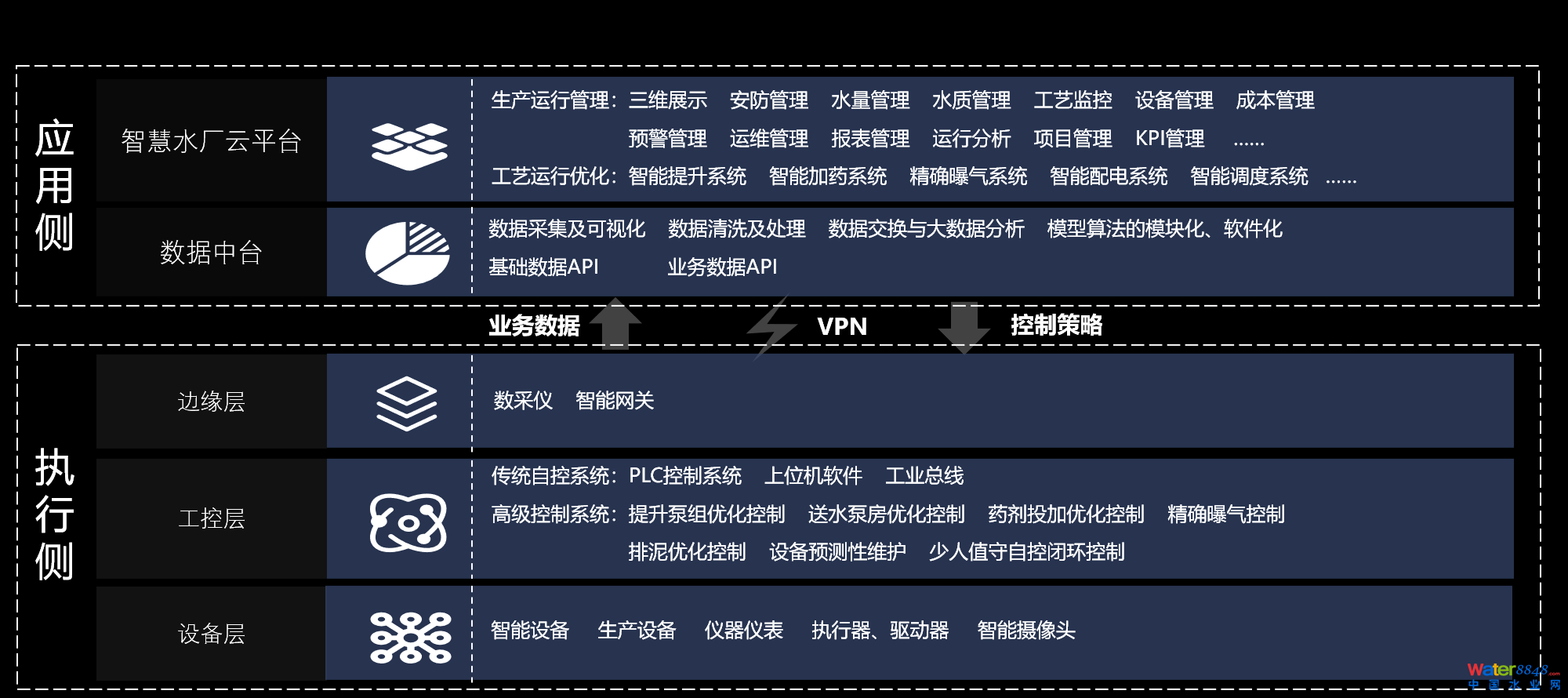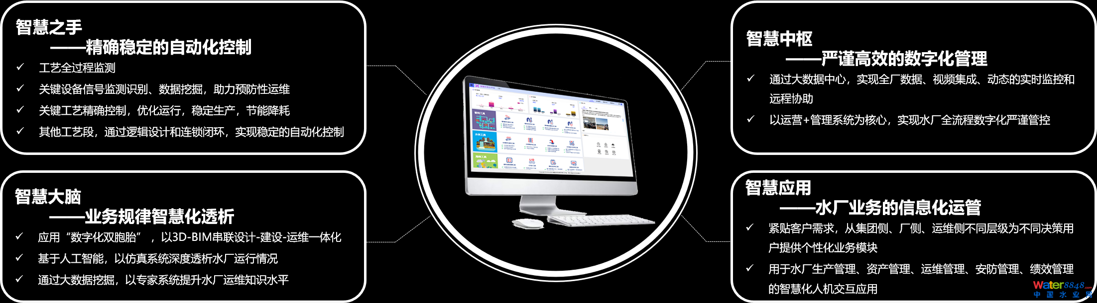 德國水工業(yè)協(xié)會的《Water 4.0》認(rèn)為水行業(yè)和工業(yè)4.0一樣也進入了水4.0時代,具有相同的發(fā)展需求和技術(shù)應(yīng)用,并明確提出了現(xiàn)階段智慧水務(wù)建設(shè)的核心內(nèi)容是數(shù)字化和智能化。