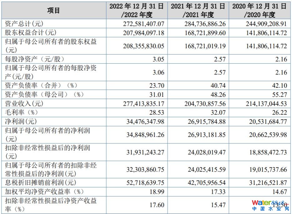 業(yè)績方面,2020 年至 2022 年,公司營業(yè)收入分別為 21,413.70 萬元、20,473.09 萬元和 27,741.38 萬元,公司凈利潤分別為 2,053.17 萬元、2,691.58 萬元和 3,447.63 萬元。