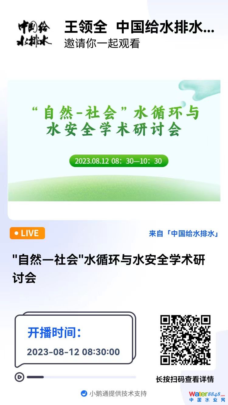 中國(guó)水業(yè)院士論壇-中國(guó)給水排水直播平臺(tái)(微信公眾號(hào)cnww1985):自然—社會(huì)水循環(huán)與水安全學(xué)術(shù)研討會(huì)