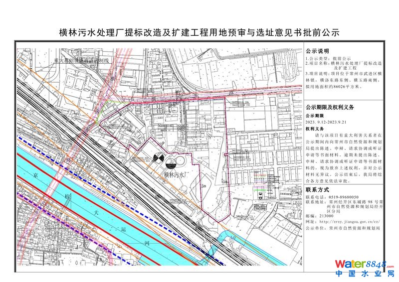 常州市自然資源和規(guī)劃局 發(fā)布日期 2023-09-12 標(biāo) 題 (經(jīng)開)橫林污水處理廠提標(biāo)改造及擴(kuò)建工程用地預(yù)審與選址意見書批前公示