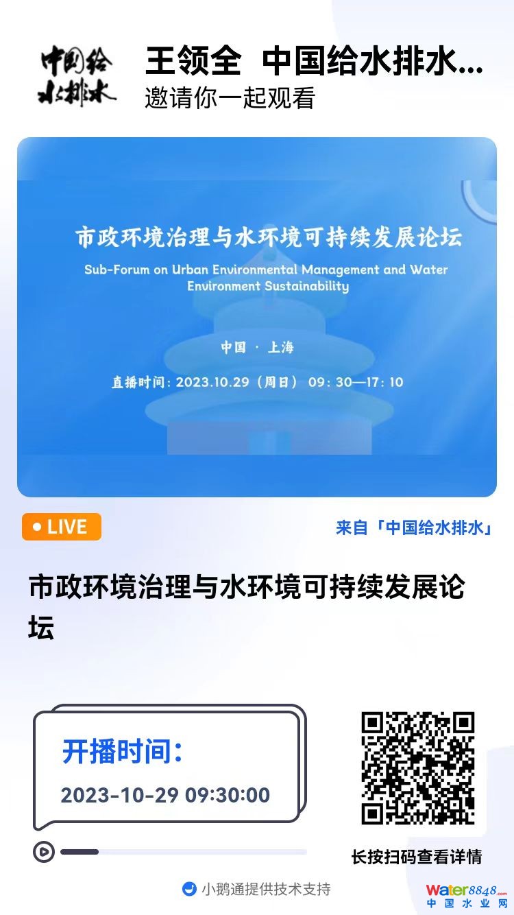中國(guó)給水排水直播:智慧水務(wù)與科技創(chuàng)新高峰論壇 直播時(shí)間:2023年11月25日(周六) 13:30 2023-11-25 13:30:00 開始 中國(guó)水協(xié)團(tuán)體標(biāo)準(zhǔn)《城鎮(zhèn)污水資源與能源回收利用技術(shù)規(guī)程》宣貫會(huì)通知 中國(guó)城鎮(zhèn)供水排水協(xié)會(huì)