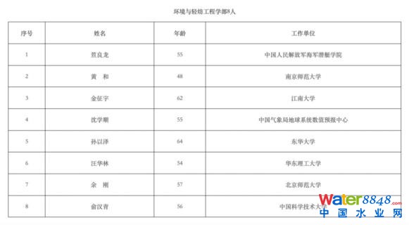 在中國工程院院士的增選名單中,有8名專家入選環(huán)境與輕紡工程學(xué)部,他們分別是中國人民解放軍海軍潛艇學(xué)院笪良龍、南京師范大學(xué)黃和、江南大學(xué)金征宇、中國氣象局地球系統(tǒng)數(shù)值預(yù)報中心沈?qū)W順、東華大學(xué)孫以澤、華東