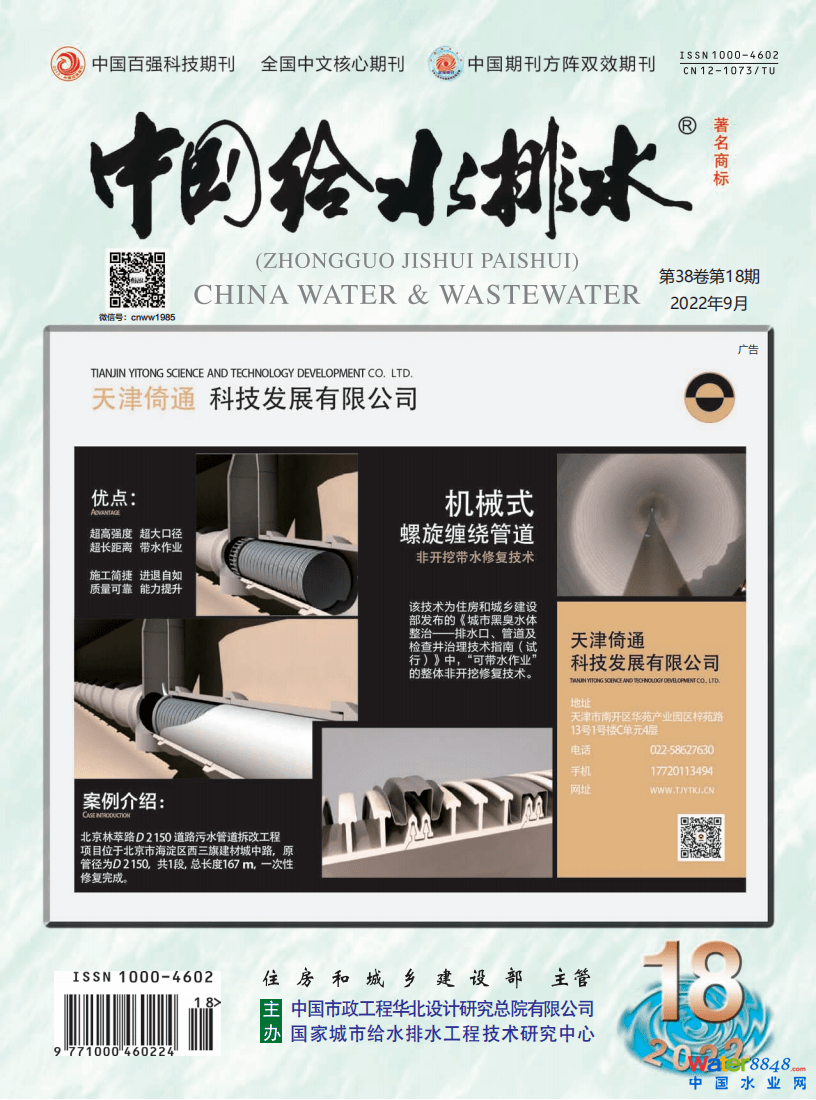 《中國給水排水》2022年18期精華回顧 《中國給水排水》2022年18期目次
