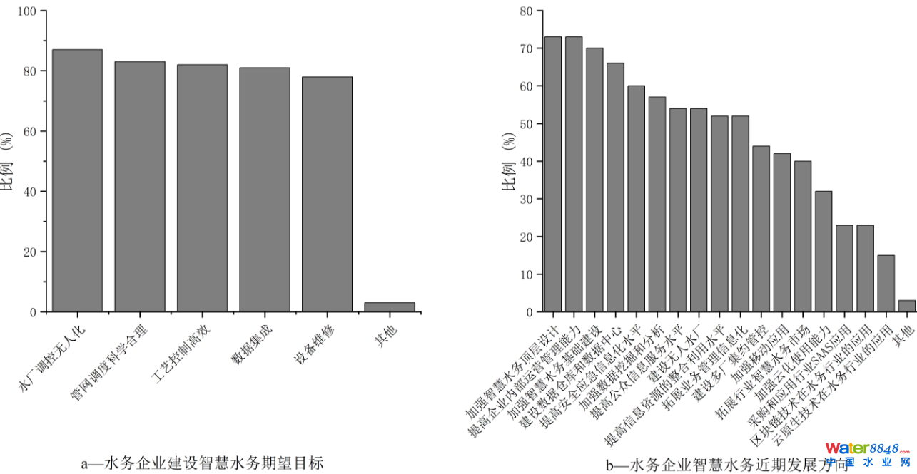 智慧水務(wù)是指通過信息化技術(shù)、物聯(lián)網(wǎng)技術(shù)、大數(shù)據(jù)技術(shù)等手段,對水資源的監(jiān)測、調(diào)度、管理和利用進(jìn)行智能化、自動化和系統(tǒng)優(yōu)化的一種水務(wù)管理模式。智慧水務(wù)的發(fā)展不僅可以提高水資源的利用效率和水質(zhì)安全,還可以為水務(wù)行業(yè)轉(zhuǎn)型升級、高質(zhì)量發(fā)展提供有力支撐。在數(shù)字中國蓬勃發(fā)展及水務(wù)行業(yè)高質(zhì)量發(fā)展的趨勢下,智慧水務(wù)建設(shè)和發(fā)展成為行業(yè)的共識,經(jīng)過多年的建設(shè),智慧水務(wù)取得了一定成效,同時(shí)也面臨著挑戰(zhàn)。為促進(jìn)智慧水務(wù)的健康發(fā)展,本文結(jié)合大量行業(yè)調(diào)研數(shù)據(jù)、智慧水務(wù)工程實(shí)踐以及思考,對我國智慧水務(wù)的發(fā)展現(xiàn)狀進(jìn)行了總結(jié)闡述,并對未來發(fā)展提出展望。