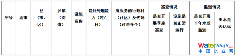 省(區(qū)、市)設(shè)計(jì)日處理能力100噸及以上農(nóng)村生活污水處理設(shè)施巡查和監(jiān)測(cè)信息表