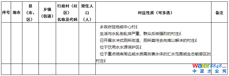 省(區(qū)、市)農(nóng)村生活污水重點(diǎn)治理村莊清單