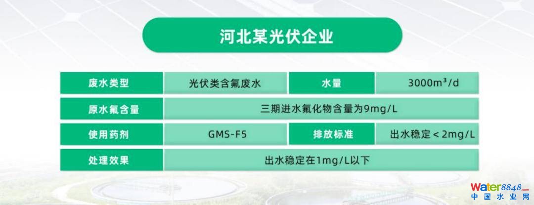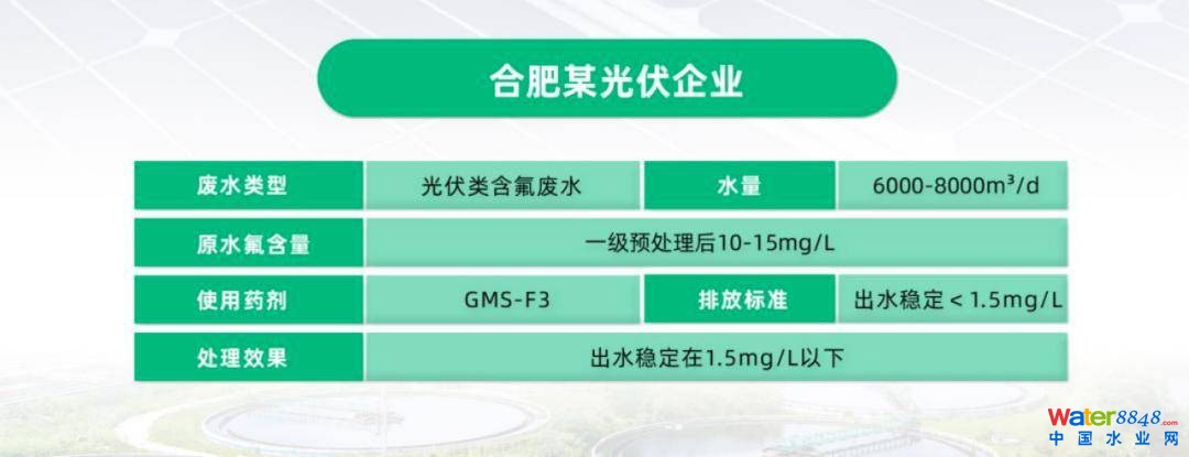 環(huán)瑞生態(tài)對河北、合肥兩家光伏企業(yè)施工的含氟廢水處理項目,進(jìn)行深度治理,實現(xiàn)了氟化物的深度去除,分別做到1mg/L、1.5mg/L以下穩(wěn)定達(dá)標(biāo)出水,獲得客戶的高度好評,在行業(yè)內(nèi)樹立了除氟劑去除氟離子的“標(biāo)桿”。
