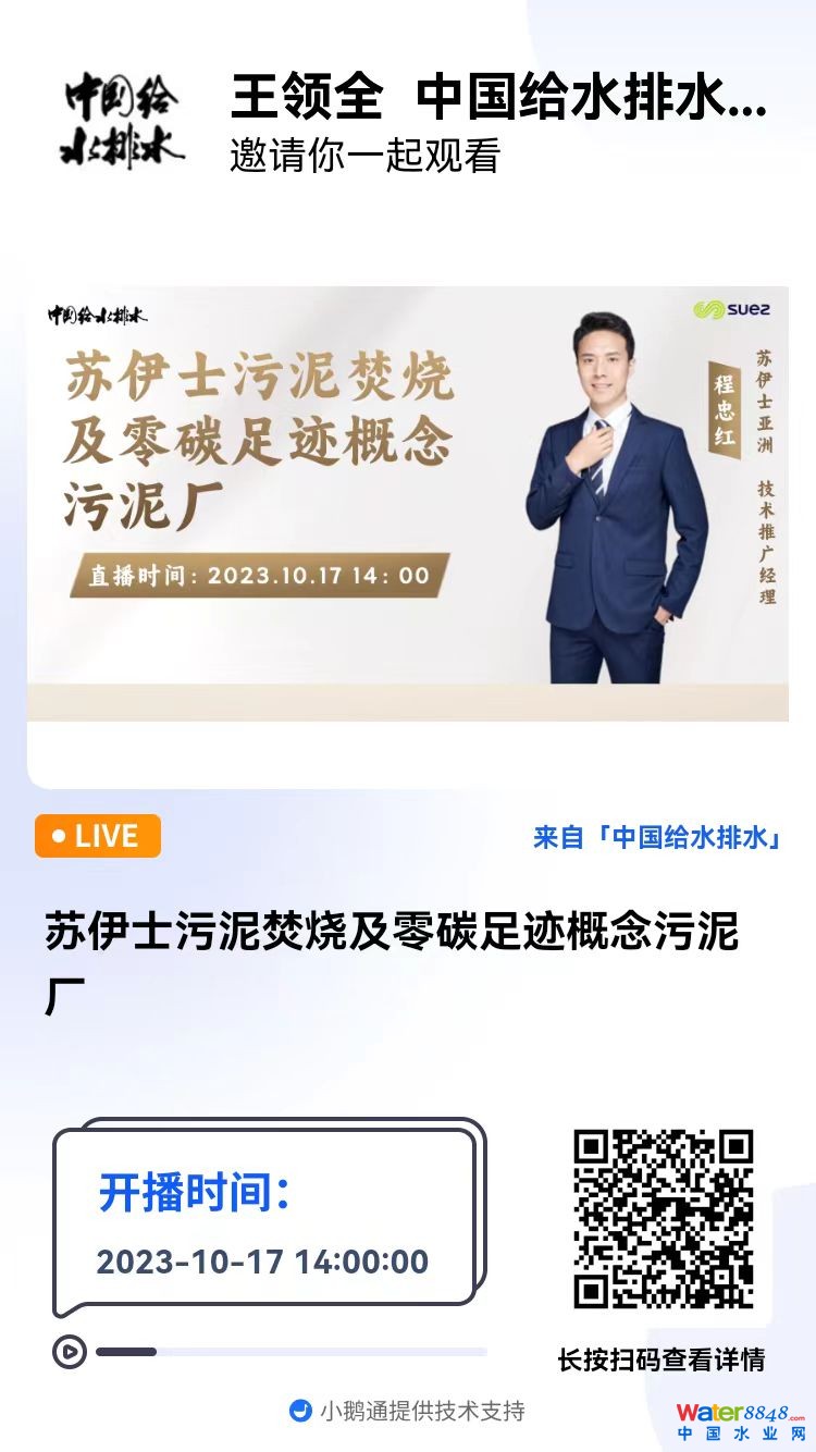 今年,蘇伊士和中國給水排水雜志社共同策劃組織了在中國給水排水直播平臺的系列講座。本次直播是系列講座之一。