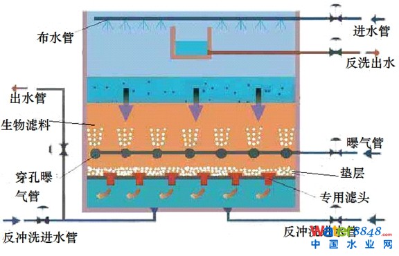 曝氣生物濾池是一種將生物氧化機(jī)理與深床過濾機(jī)理有機(jī)結(jié)合的新型污水生物處理技術(shù)。