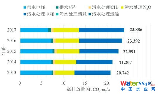 未來新水務(wù)專家組專家、北京建筑大學(xué)教授郝曉地指出,城鎮(zhèn)給水處理廠和污水處理廠運(yùn)行階段,碳排放活動(dòng)主要包括給水處理廠取水、處理和輸配水產(chǎn)生的電耗和藥耗(包括運(yùn)輸),以及污水處理過程直接產(chǎn)生的非二氣體排放(CH4與N2O)、電耗藥耗(包括運(yùn)輸)、污泥外運(yùn)等。其中,電耗與直接非二氣體排放是當(dāng)前影響最為顯著的部分。