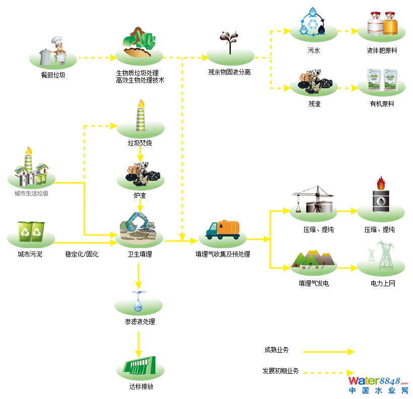 東江環(huán)保所從事的市政廢物處理業(yè)務包括市政廢物的處理處置和再生能源利用,主要是對城市生活垃圾進行清運和衛(wèi)生填埋以及生活垃圾填埋滲濾液進行處理達標排放;利用生活垃圾填埋場所產(chǎn)生的填埋氣進行發(fā)電。此外,填埋氣發(fā)電項目和公司聯(lián)合投資的煤礦乏風減排項目可減少溫室氣體的排放,符合《京都議定書》規(guī)定的清潔發(fā)展機制,項目經(jīng)聯(lián)合國CDM執(zhí)行理事會批準后,二氧化碳核準減排量可在國際市場交易。