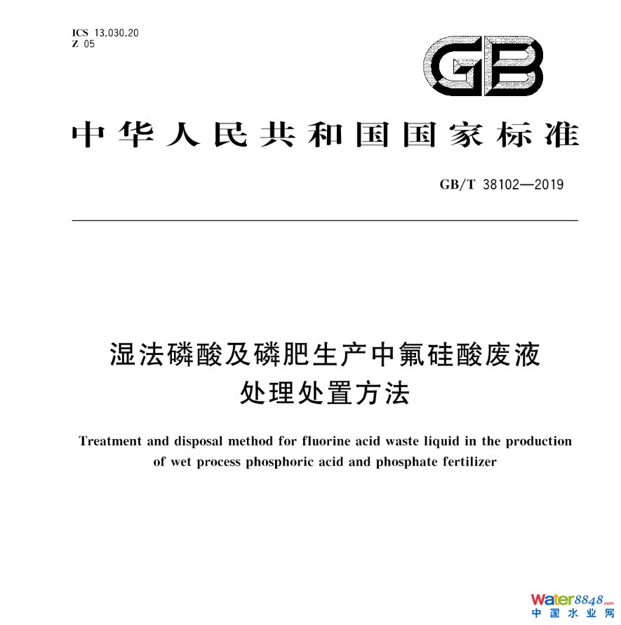 國家標準——濕法磷酸及磷肥生產(chǎn)中氟硅酸廢液處理處置方法