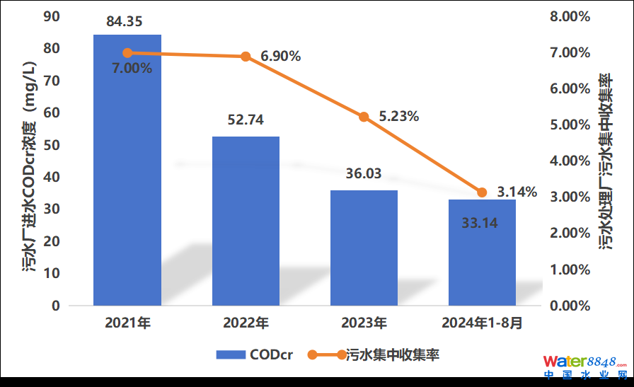 連州市城區(qū)每天產(chǎn)生生活污水約3.4萬噸。目前,只有設(shè)計能力2萬噸/日的連州市污水處理廠在正常運行,處理能力不足。因配套污水管道錯混接較多、破損較多,結(jié)構(gòu)性缺陷突出,外水入侵嚴重,連州市污水處理廠進水化學(xué)需氧量濃度從2021年的84毫克/升下降至2023年的36毫克/升,基本“清水進清水出”;2021-2023年,連州市城市污水集中收集率分別只有7%、6.9%、5.2%,2024年1-8月更是低至3.1%,遠低于連州市自定的2021年底前城市污水集中收集率達到19.17%的目標,全省縣級市中排名倒數(shù)第一。