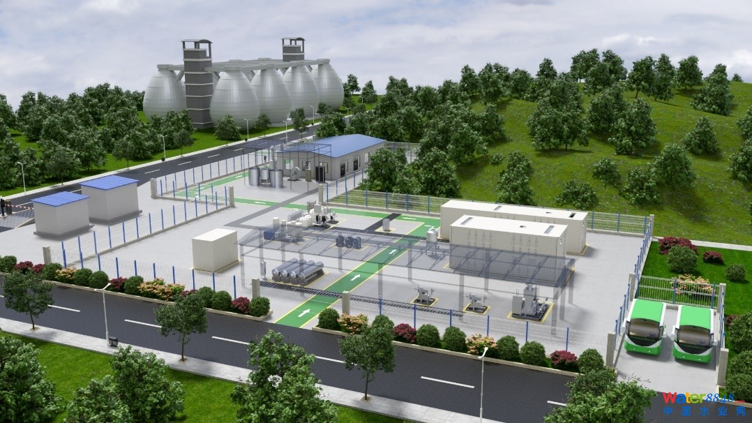 第一條路線是利用光伏發(fā)出的綠電電解再生水,把污水凈化后的再生水作為原料進行電解,制備成綠氫。第二條路線則更加獨特,利用污泥厭氧消化產生的沼氣進行制氫。