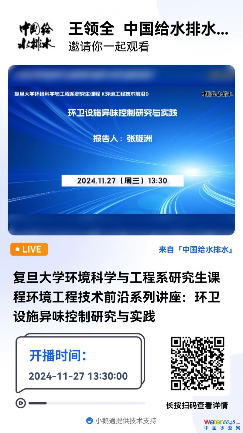 技術(shù)沙龍 | 先進(jìn)水技術(shù)博覽(Part 11) 直播時(shí)間:8月19日(周六)上午10:00-12:00 2023-08-19 10:00:00  廣東匯祥環(huán)境科技有限公司  湛蛟  技術(shù)總監(jiān)  天津萬(wàn) 中國(guó)水業(yè)院士論壇-中國(guó)給水排水直播平臺(tái)(微信公眾號(hào)cnww1985):自然—社會(huì)水循環(huán)與水安全學(xué)術(shù)研討會(huì)