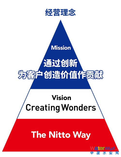 核心提示:美國(guó)海德能的使命是通過(guò)技術(shù)創(chuàng)新成為膜分離行業(yè)的全球知名企業(yè)。我們努力提供能達(dá)到行業(yè)高質(zhì)量的膜產(chǎn)品和服務(wù)。我們遵循商業(yè)倫理準(zhǔn)則建立業(yè)務(wù)關(guān)系,并擔(dān)當(dāng)社區(qū)的好企業(yè)公民。我們依據(jù)員工的貢獻(xiàn)提供公平的獎(jiǎng)勵(lì),并提供滿(mǎn)意的工作環(huán)境。 The Nitto Way 基礎(chǔ)思維解釋日東集團(tuán)全部員工通過(guò)創(chuàng)新思想,為達(dá)成“為客戶(hù)創(chuàng)造價(jià)值作貢獻(xiàn)”的“使命”所必須遵循的“價(jià)值”、“思維和態(tài)度”、“行為基準(zhǔn)”。 自日東集團(tuán)成立以來(lái),那些早于我們的日東員工所擁有的認(rèn)真的愿望、智慧和價(jià)值經(jīng)過(guò)長(zhǎng)期的積累已成為“日東DNA