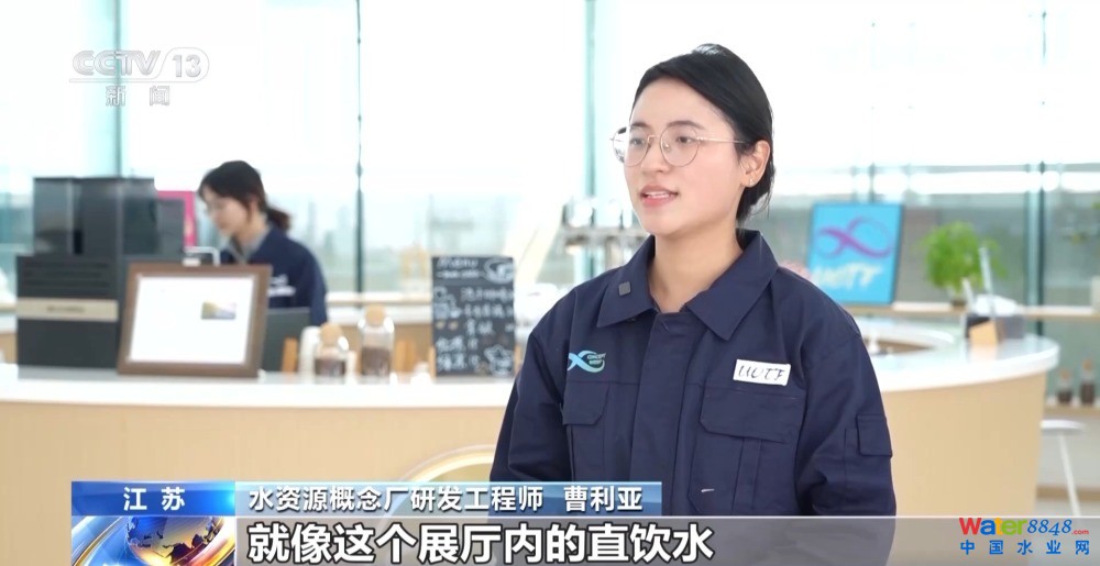 水資源概念研發(fā)工程師 曹利亞:就像這個(gè)展廳內(nèi)的直飲水,以及泡咖啡的水,都是來(lái)源于處理后的尾水。
