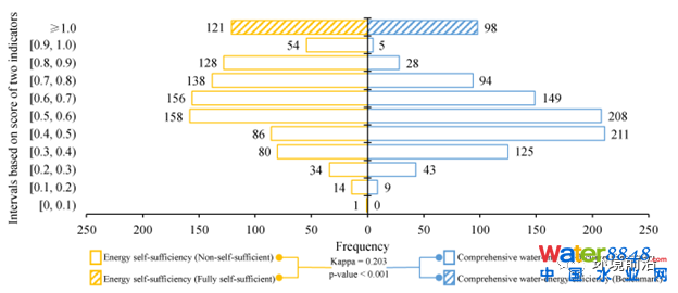 圖2 污水處理廠在能源自給自足(ESS)和水-能源效率(CWEE)頻率分布