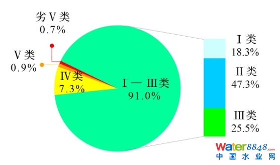 圖1 第一季度全國(guó)地表水水質(zhì)類別比例