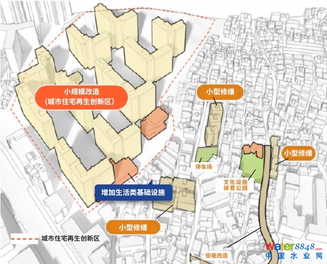 創(chuàng)建更新模式方法,劃定城市住宅再生創(chuàng)新區(qū)。對難以自發(fā)組織社區(qū)更新工作,符合基礎設施薄弱、土地面積較小、老年人口多等條件的居住衰退地區(qū),可劃定為住宅再生創(chuàng)新區(qū),采用集住房、福利和生活便利于一體的新區(qū)域更新模式。創(chuàng)新區(qū)整體設計步行范圍可達的綠地、文化、休閑和商業(yè)空間,推進地區(qū)道路、供水、排水等重要基礎設施建設和住房修繕、小規(guī)模改造等工作,還可申請相應的專項公共扶持資金,同時放寬法規(guī)中對用地比例、容積率、停車場設置、建筑物高度等指標限制。