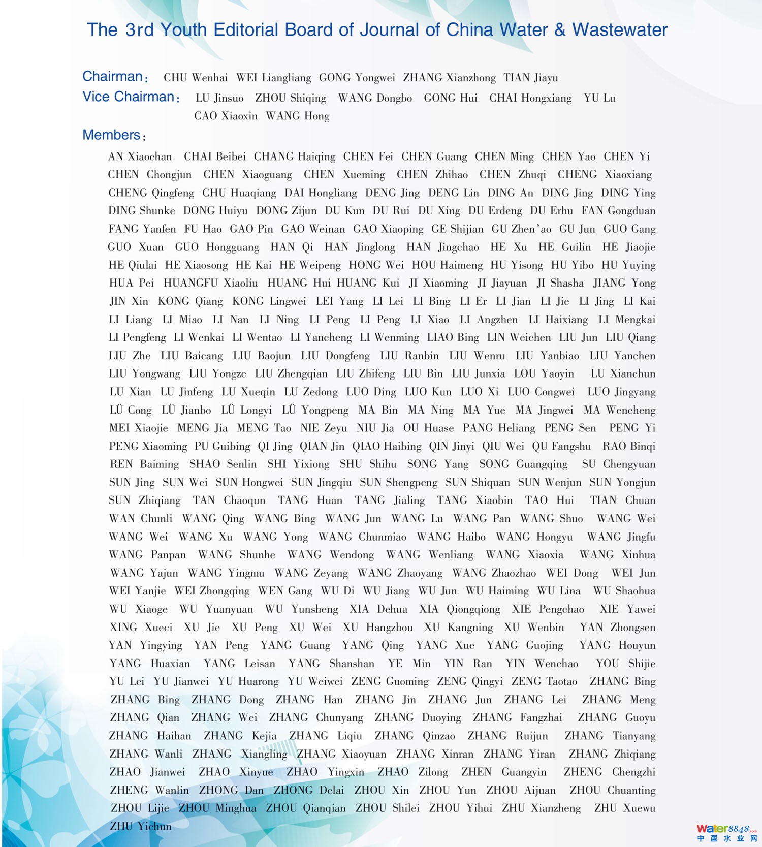 8、彭永臻 9、馬軍 10、季民、李激、赫俊國(guó)、李軍(北工大)、李軍(浙工大)、董文藝、李金河、陳曉華、張曉健、陳同斌 、傅大放、黃志彬(臺(tái)灣)