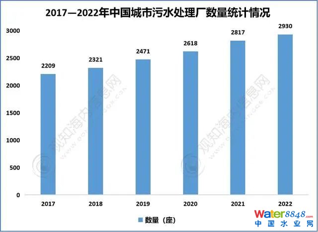 2017—2022年中國(guó)城市污水處理廠數(shù)量統(tǒng)計(jì)情況